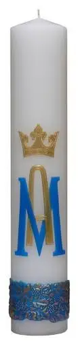 Świeca produkowana w kolorze żółtym i białym. Zdobiona aplikacją woskową.