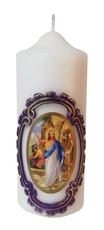 Świeca jest wykonana metodą prasowania. Kolorowa jest zewnętrzna powłoka świecy. Możliwość różnych kolorów. Kolor podstawowy biały i żółty.