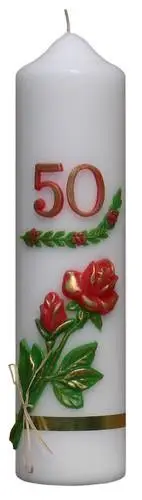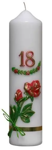 Świeca wykonywana w kolorach białym i ecru. Zdobiona aplikacją woskową.